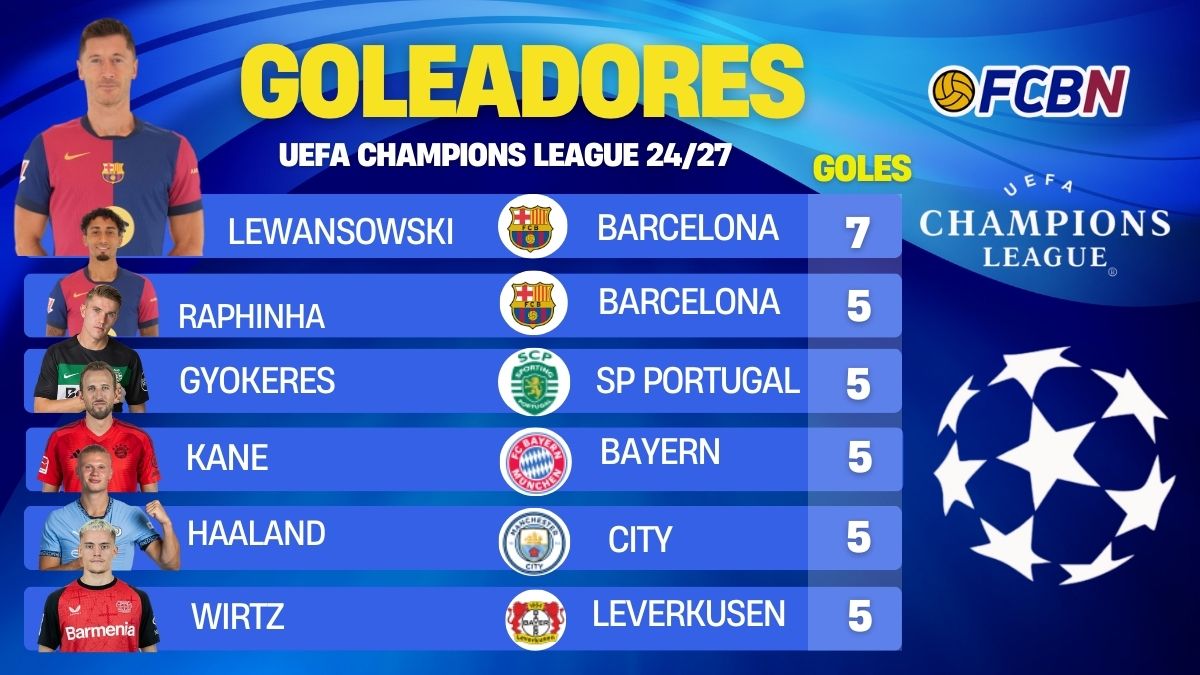 En principio, el que experimentó el cambio más importante fue Lewandowski, quien llegaba a esta jornada con un total de cinco anotaciones, liderando la tabla junto a jugadores como Raphinha, Viktor Gyökeres y Harry Kane, quienes también tienen cinco dianas. No obstante, pese a que todos vieron acción hoy, el único que pudo materializar su voluntad goleadora fue el ariete polaco, quien ahora se ha distanciado ligeramente en esta 'carrera'.
