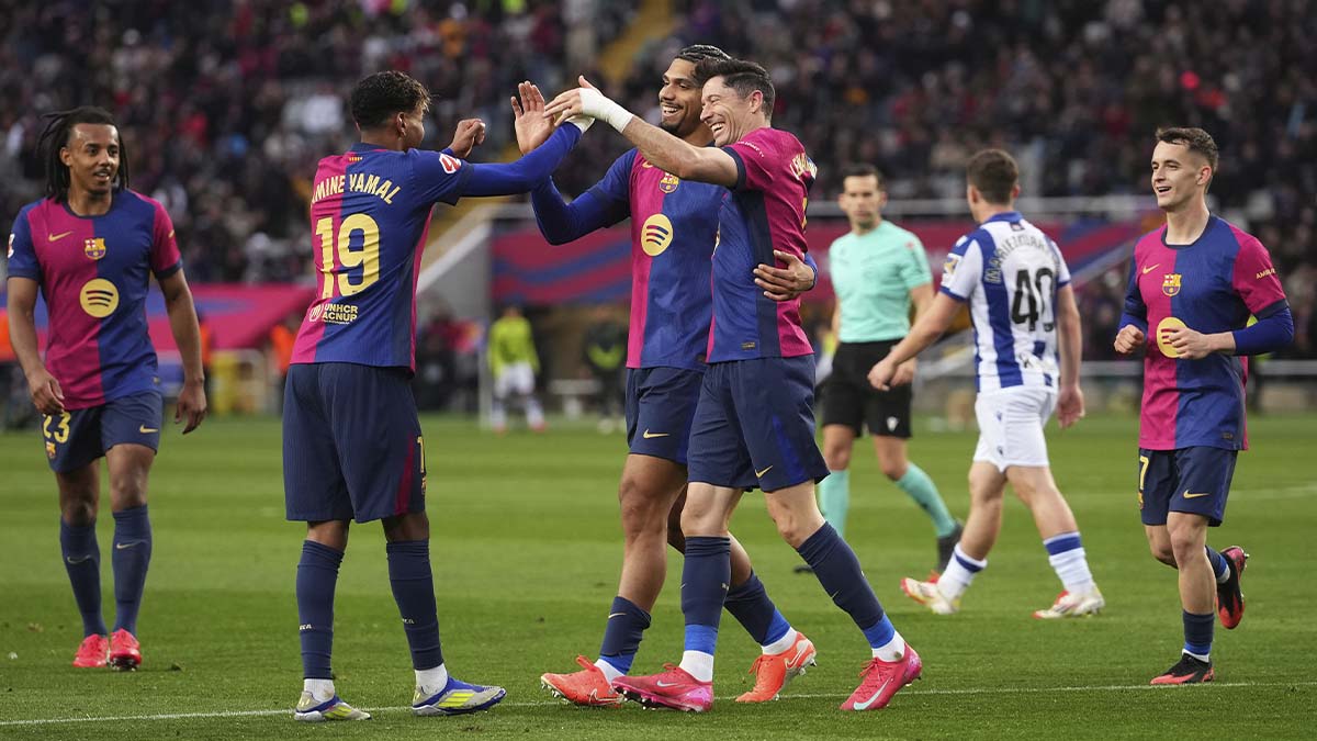 FC Barcelona achieved their sixth consecutive victory in LaLiga EA Sports against Real Sociedad (4-0) and the twelfth in 15 appearances this 2025. Goals from Gerard Martín, Marc Casadó, Ronald Araujo, and Robert Lewandowski rounded off a comfortable victory with which Hansi Flick's team maintains the lead in the tournament with 57 points, one more than Atlético de Madrid and three ahead of Real Madrid.