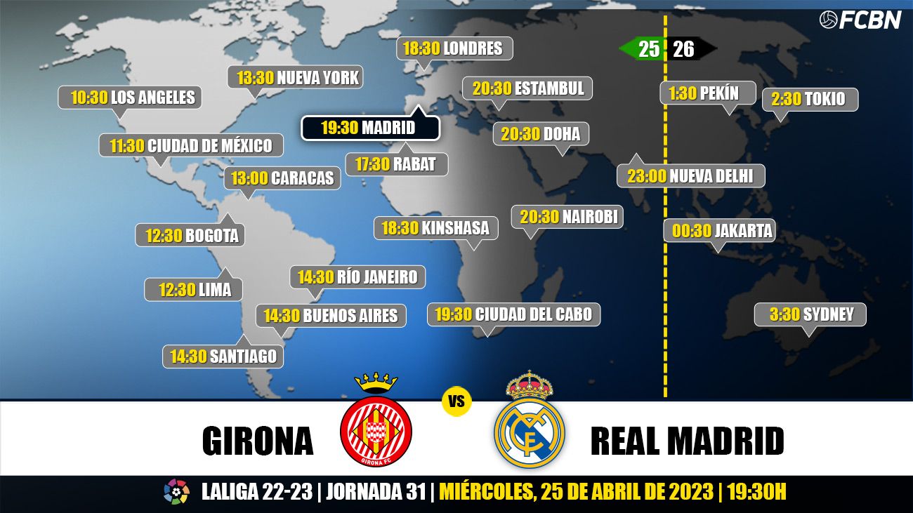 Besides, different International channels of TV offer to see the Girona vs Madrid of the Day 31 of LaLiga Santander in straight across of his platforms. These are the schedules and channels of television that broadcast live and on-line the party Girona vs Real Madrid, but remembers that if in your country does not televise , can follow with us the result here.
