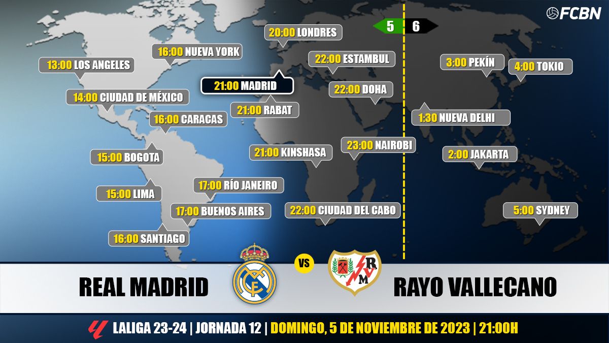 Besides, different International channels of TV offer to see the Real Madrid vs Ray Vallecano of the day 12 of LaLiga EA SPORTS in straight across of his platforms. These are the schedules and channels of television that broadcast live and on-line the party Real Madrid vs Ray Vallecano, but remembers that if in your country does not televise , can follow with us the minute and result here.
