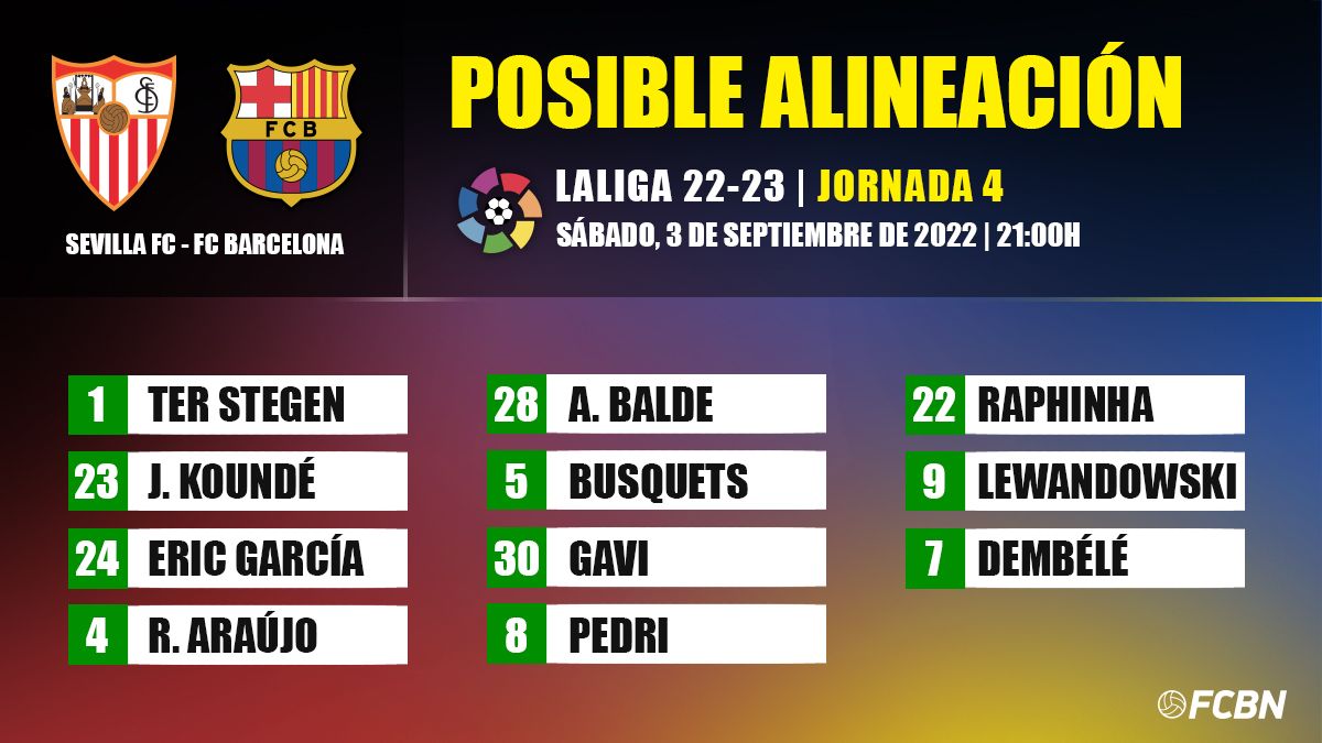 FC Barcelona visits Sevilla this Saturday at the Ramón Sánchez Pizjuán, for the fourth day of LaLiga Santander 2022-2023. Few changes are expected in the team coached by Xavi Hernández