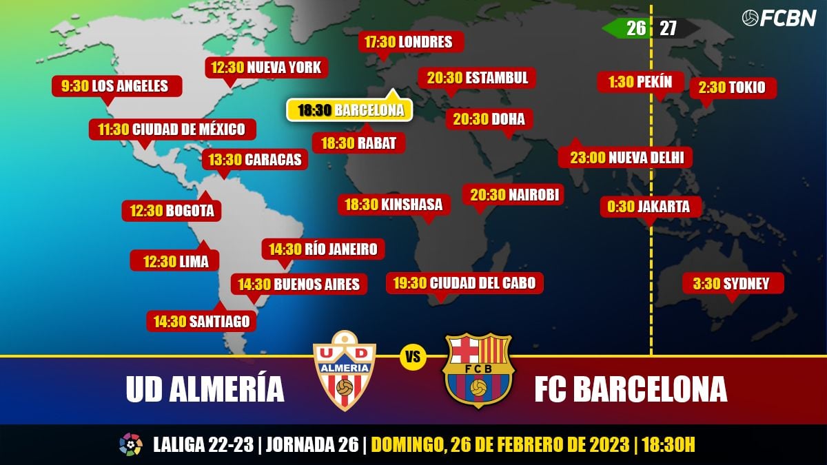 UD Almería and FC Barcelona will meet this Sunday, February 26 at 6:30 p.m. (CET) at the Power Horse Stadium. The match corresponds to the twenty-third day of LaLiga Santander 2022-2023 and pits Rubi's Almería against Barça coached by Xavi Hernández. Next, we review the times and where to watch this football match on TV.