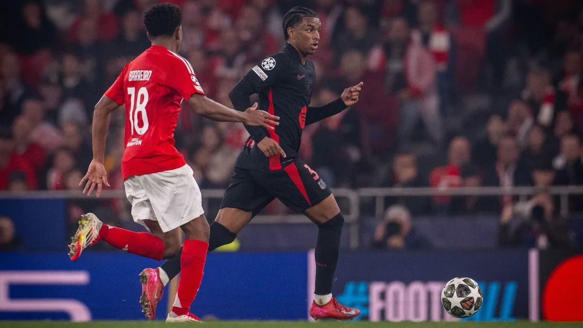 Alejandro Balde terminó el partido entre el Benfica y el FC Barcelona en la Champions League con un golpe importante en su tobillo