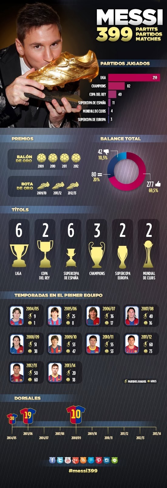 Las curiosidades que rodean a la descomunal carrera del delantero argentino del Barça son infinitas. Repasa en este infográfico la trayectoria inigualable del '10' del Barça: