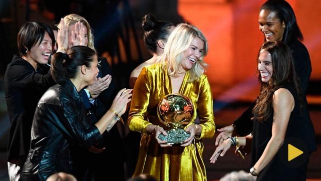 La futbolista noruega Ada Hegerberg, de 23 años, hizo historia este lunes al conquistar el primer Balón de Oro femenino que entregó la revista 'France Football'. La jugadora del Olympique de Lyon, visiblemente feliz por la gesta, celebró el premio con los suyos y respondió con emoción a las preguntas de los presentadores de la gala, celebrada en París.