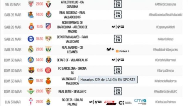Partidos y horarios de la jornada 29 de LaLiga 2024/25