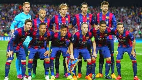 Alineación del FC Barcelona: Ter Stegen, Dani Alves, Piqué, Mascherano, Jordi Alba, Sergio Busquets, Xavi, Rakitic, Messi, Luis Suárez y Neymar.