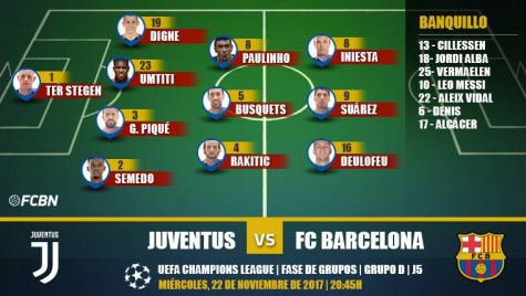 Este es el XI del Barça ante la Juventus: