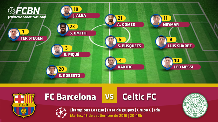 Tocaba estrenarse en la UEFA Champions League 2016-17 contra el Celtic de Glasgow para el FC Barcelona de Luis Enrique, en la primera jornada de la competición. Un encuentro, para los culés, con el objetivo de sumar los primeros tres puntos en casa y recuperar las buenas sensaciones perdidas tras el "patinazo" sufrido ante el Deportivo Alavés del pasado sábado. El Barça de "Lucho" salió con un once realmente competitivo en busca de los tres puntos.