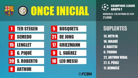 Alineaciones del FC Barcelona-Inter Milán de la Champions 2019-20