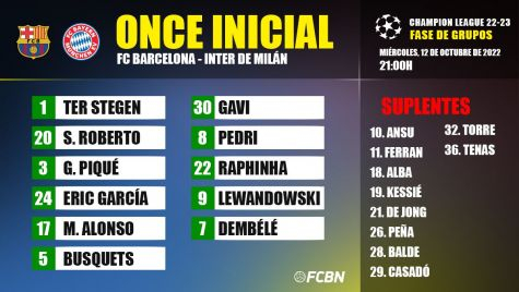 Alineaciones del FC Barcelona-Inter de Milan de la Champions League 2022-2023