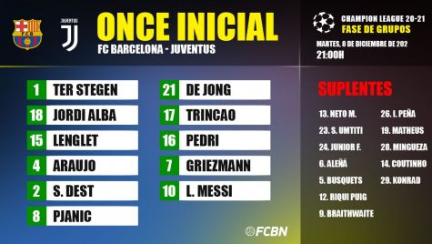 Ronald Koeman ha revelado ya la alineación con la que el FC Barcelona se enfrentará este martes a la Juventus en el Camp Nou. Este es el XI del Barça: Ter Stegen; Dest, Lenglet, Araujo, Jordi Alba; Pjanic, De Jong; Pedri, Messi, Trincao y Griezmann