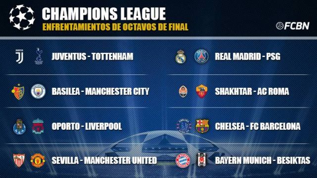 Los emparejamientos de octavos de final de la Champions League: