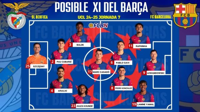 Benfica vs FC Barcelona: Alineaciones probables del partido - Champions League 2024-25