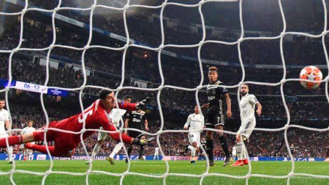 Poco tardó el equipo holandés en meter el miedo en el cuerpo al Santiago Bernabéu, con un gol de Ziyech en la primera jugada trenzada del equipo holandés. Tadic puso el pase de la muerte desde la banda derecha y el marroquí superó a Courtois con un tiro colocado. Era el primer aviso de la noche ante un Real Madrid que sufrió la dejadez de Sergio Ramos al forzar la amarilla.
