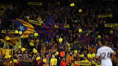 Un sector de la afición del FC Barcelona quiso protestar por el encarcelamiento de algunos políticos catalanes, y por ese motivo se pudieron ver pancartas con el mensaje 'llibertad' y con fondo amarillo, del mismo color que los lazos que se utilizan habitualmente en Catalunya para protestar por el encarcelamiento de dichos cargos políticos.