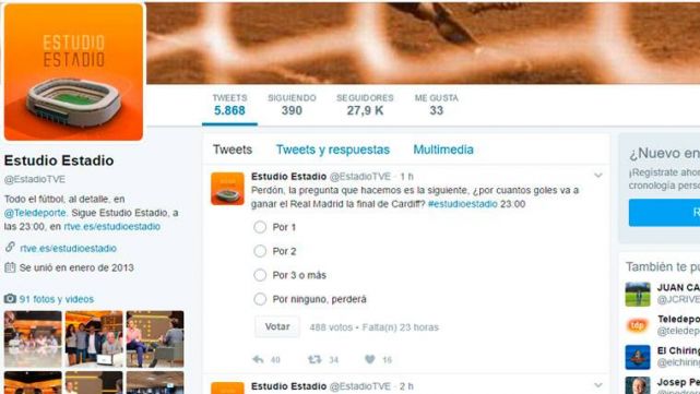 Perdón, la pregunta que hacemos es la siguiente, ¿por cuantos goles va a ganar el Real Madrid la final de Cardiff? #estudioestadio 23:00