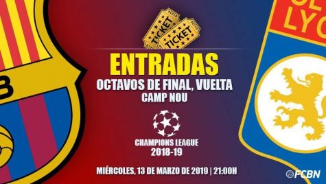 Ya puedes comprar tus entradas para el partido que enfrenta a FC Barcelona contra Olympique de Lyon en la vuelta de octavos de final de la UEFA Champions League 2018-2019. El partido se juega en el estadio del Camp Nou el miércoles 13 de marzo a las 21:00 horas