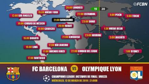 ¿Cuándo y dónde ver el partido FC Barcelona-Olympique Lyon? Repasamos la guía internacional con los horarios y los canales de televisión que retransmiten en directo y online la vuelta de octavos de final de la Champions League 2018-2019. En España, puedes ver el partido el miércoles 13 de marzo a las 21:00 horas