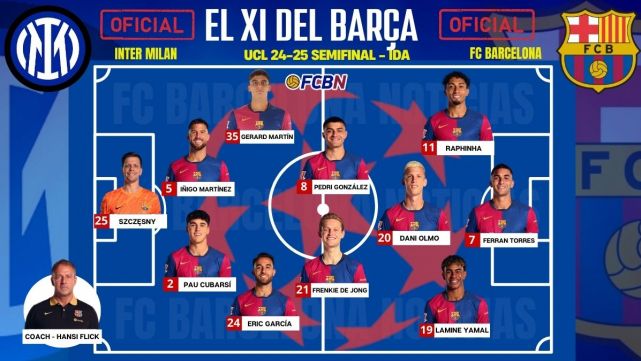 ¡ALINEACIONES CONFIRMADAS! Estos son los XI titulares de Inter de Milán y FC Barcelona para la vuelta de 'semis' de la Champions 24/25. Hansi Flick realiza solo un cambio respecto a la ida en Montjuïc