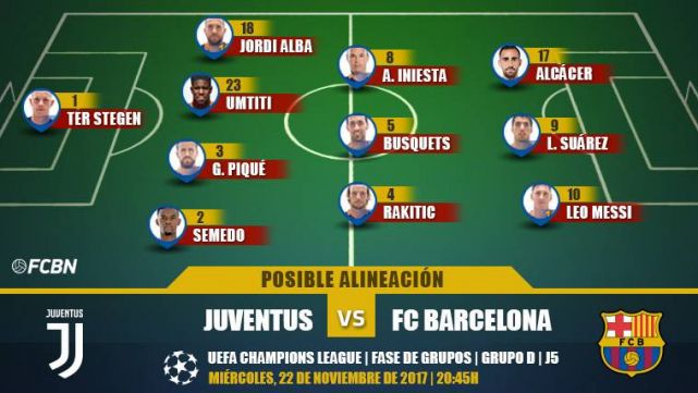 Las posibles alineaciones del Juventus-Barça (Champions J5)
