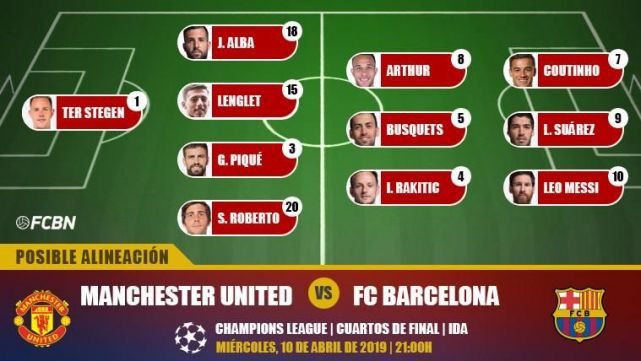 Las posibles alineaciones del Manchester United-FC Barcelona (1/4 de Champions)