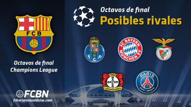 El FC Barcelona ya conoce a sus cinco posibles rivales en la ronda de octavos de final de la UEFA Champions League 2016-17. Son Bayern Múnich, Paris Saint-Germain, Benfica, Oporto y Bayer Leverkusen, contrincantes nada fáciles
