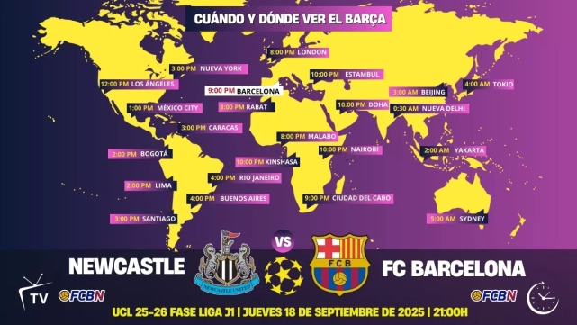 El Fútbol Club Barcelona debuta en la UEFA Champions League 2025-26 con la visita al Newcastle en el en el St. James' Park. Se trata de la primera jornada de la fase liga del torneo, un encuentro de máxima exigencia para los de Hansi Flick, que buscan sumar sus primeros 3 puntos para posicionarse en la zona alta de la clasificación general.