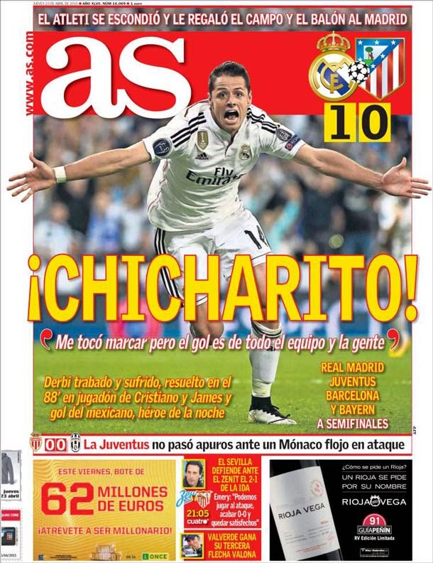 Portada AS: ¡Chicharito! (jueves, 23 de abril)