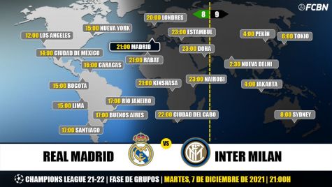 En España, el Real Madrid-Inter de Milan será televisado en directo el martes 7 de diciembre a las 21:00 horas por los canales Movistar Liga de Campeones 1, Movistar Liga de Campeones 2 y LaLiga TV Bar, a través de los operadores Movistar y Orange, que ofrecerán el partido en Internet y con acceso desde tu móvil, tablet, ordenador o Smart TV.