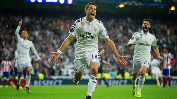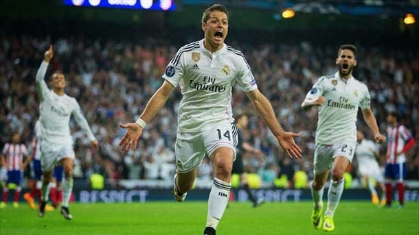 Un gol del mexicano al borde del final decidió a favor del Real Madrid una intensa eliminatoria y dio el pase a semifinales a los blancos. El equipo blanco ha tenido que picar piedra hasta el último suspiro para eliminar el Atlético, que ha jugado con diez hombres el úlltimo cuarto de hora por la expulsión de Arda. Barça, Bayern y Juventus completan las semifinales