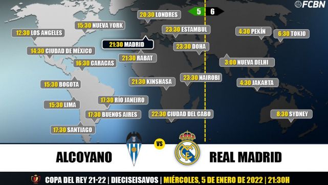 Además, diferentes canales Internacionales de TV ofrecen ver el partido Alcoyano-Real Madrid de la Copa del Rey en directo a través de sus plataformas. Estos son los horarios y canales de televisión que retransmiten en vivo y online el partido Alcoyano-Madrid, pero recuerda que si en tu país no se televisa, puedes seguir con nosotros el minuto y resultado aquí.