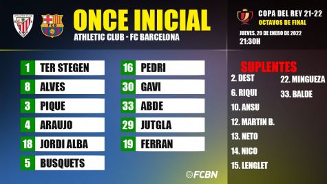 Alineaciones del Athletic-FC Barcelona de la Copa del Rey 2021-2022