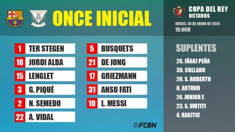 Alineaciones del FC Barcelona-Leganés de la Copa del Rey 2019-20