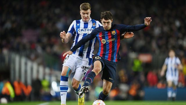 Ante la Real Sociedad, el de Rivera acompañó al ex jugador del Chelsea como centrales, con Koundé en la banda derecha. Los donostiarras llegaron poco en un partido muy físico en el perdieron a Brais Méndez antes del descanso por expulsión y, con excepción de un remate al larguero de Takefusa Kubo, el arco de Marc-André ter Stegen no sufrió sobresaltos en el primer tiempo.
