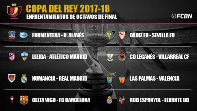 Los emparejamientos de octavos de final de la Copa del Rey: