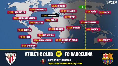 ¿Cuándo y dónde ver el partido Athletic-FC Barcelona? Guía Internacional con los horarios y los canales de TV que retransmiten en directo y online los 1/4 de final de la Copa