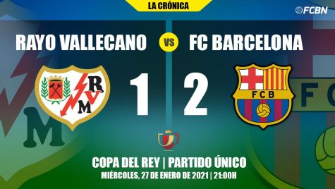El FC Barcelona consiguió el ticket a los cuartos de final de la Copa del Rey tras ganar 'in extremis' al Rayo Vallecano, con goles de Messi y De Jong, ante el tanto de García