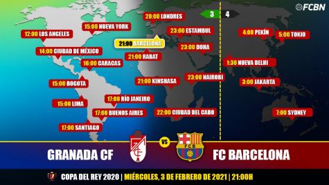 En Sudamérica, Centroamérica, Caribe, México y Brasil, el partido Granada contra Barcelona podrá verse en vivo a través de los siguientes horarios y canales de televisión: DIRECTV Sports, ESPN, SKY Sports y Tigo Sports.