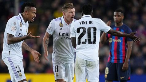 El Real Madrid avanzó a la final de la Copa del Rey después de una contundente goleada ante el FC Barcelona (0-4). Vinicius Jr. y Karim Benzema cargaron con el peso ofensivo de un conjunto 'merengue' que hizo lo que quiso con el fondo culé en el complemento. Sin embargo, el buen quehacer de la delantera blanca volvió a quedar eclipsada por los continuos cruces del brasileño con los jugadores culés.
