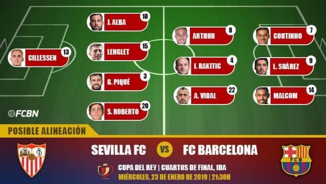 La gran incógnita es quién actuará como tercer atacante sin Leo Messi, y todo parece indicar que será Malcom. Sin el argentino ni Dembélé -por lesión-, el brasileño podría formar delantera con Coutinho y Luis Suárez, mientras que Kevin-Prince Boateng también podría tener alguna oportunidad en la segunda mitad, así como Denis y Aleñá en posiciones de extremo.