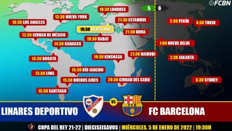 ¿Cuándo y dónde ver el Linares-FC Barcelona? Guía Internacional con los horarios y los canales de TV que retransmiten en directo y online el partido de la Eliminatoria 32 de la Copa del Rey