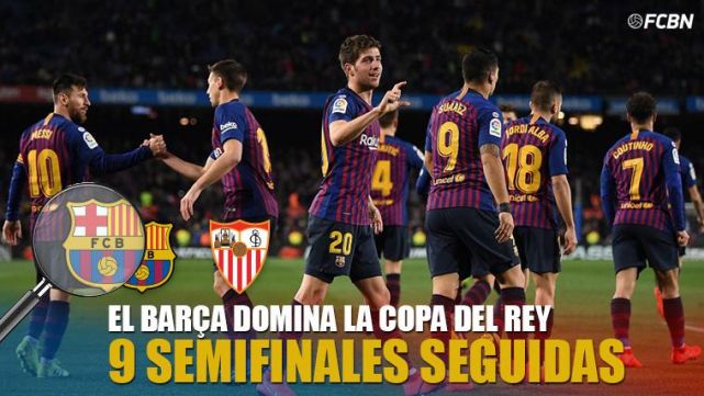Con la remontada cosechada este miércoles contra el Sevilla en la vuelta de cuartos de final de la Copa del Rey 2018-19, el FC Barcelona confirma su presencia en la que será su novena semifinal consecutiva en el torneo del KO español