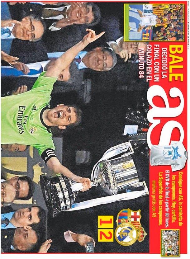 Portada AS, jueves 17 de abril de 2014. Bale decidió la final con un golazo en el minuto 84.