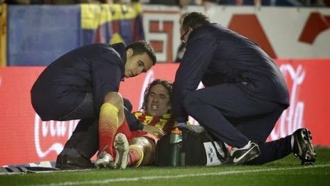 Puyol fue sustituido por un golpe en la pierna izquierda