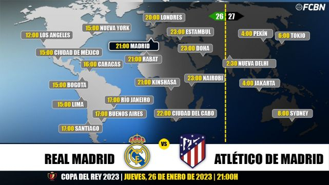 ¿Cuándo y dónde ver el Real Madrid-Atlético de Madrid? Guía Internacional con los horarios y los canales de TV que retransmiten en directo y online el partido de los cuartos de final de la Copa del Rey 2023