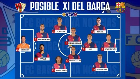 - XI titular: (25) Szczesny (P); (23) Koundé, (4) Araujo, (5) Íñigo Martínez, (35) Gerard Martín; (17) Casadó, (8) Pedri, (14) Pablo Torre; (16) Fermín, (6) Gavi, (9) Lewandowski.