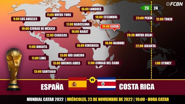 En España, el España-Costa Rica será televisado en directo el miércoles 23 de noviembre, a las 17:00 horas por Gol Mundial, La 1 TVE, RTVE Play y a través de los canales habilitados de Gol Mundial en Movistar+ y LaLiga TV. Además, también se verá a través de los operadores Movistar y Orange, que ofrecerán el partido en Internet y con acceso desde tu móvil, tablet, ordenador o Smart TV.
