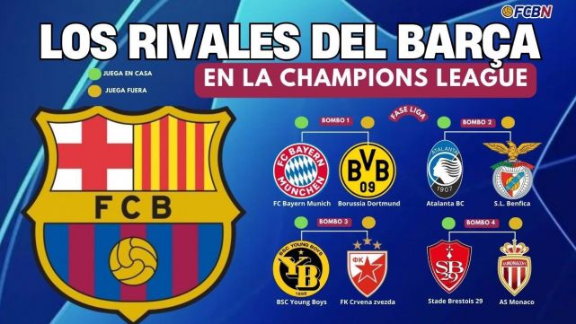 The Champions League is launching a new format this season and this Thursday the groups in which the first phase of the League will be decided have been defined. FC Barcelona will face these 8 rivals: Bayern, Dortmund, Atalanta, Benfica, Young Boys, Red Star, Brest and Monaco