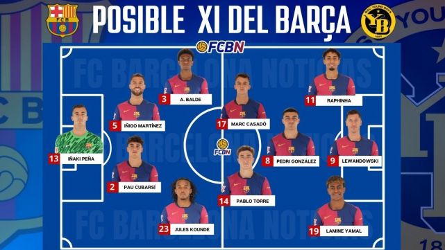 Hansi Flick's team will come into the match with the motivation to turn around their poor start and take the first three points of this year's continental tournament. Under these circumstances, and after resting several regular starters in the League, it is expected that the German coach will not make any rotations. Below, we show you the possible starting lineups for Barcelona and Young Boys: